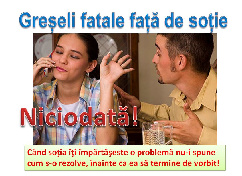 1. Când soţia îți împărtășește o problemă nu-i spune cum s-o rezolve, înainte ca ea să termine de vorbit!
