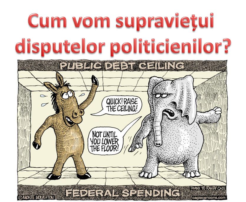 De câteva zile se dispută soarta noastră. Democrații vor tavanul datoriilor ridicat cât mai sus, republicanii vor pardoseala cheltuielilor coborâtă cât mai jos. Unde suntem noi? La mijloc ca întotdeauna. Mingea politicienilor. Disputa lor nu este altceva decât viitorul nostru și al copiiilor lor noștri. Încăpățânarea măgarului și nervozitatea elefantului ne vor lărgi oricum volumul datoriilor. Iar vom fi cei mai… Cei mai datori oameni de pe pământ!