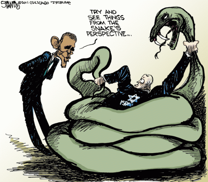 Probabil ca daca cei de la ,,,,Chicago Tribune”””””,ar fi citit Apocalipsa capitolul 12 ,si ar fi primit si talmacire la Cuvant ,nu faceau asa ilustratia ,ci ar fi ilustrat pe acel sarpe doar intr o urmarire pe viata si pe moarte a Israelului.Si acum ce sa spunem ,nimic mai mult decat ca lumea inca ii in intunerec ,desi par ca sunt luminatii ilustrand astfel de ilustratii.Apocalipsa cap 12 cu 13 ,arata si zice asa:
