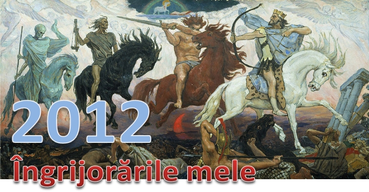 Dacă alții au perspective profetice pentru anul acesta, am și eu câteva temeri pentru anul 2012. Numiți-le îngrijorări, dacă vreți. Ele fac parte din pesimismul meu personal cu care văd realitatea vremii. Iată câteva din îngrijorările mele pentru anul 2012: