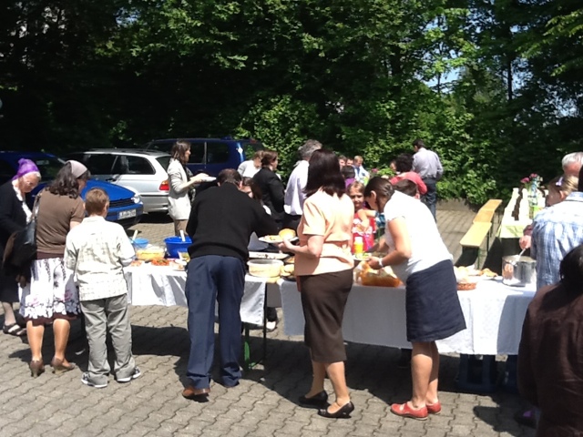 Azi, sâmbătă, 19 mai, conferința a avut două sesiuni intrerupte de o masă de dragoste a participanților. Familiile bisericii s-au întrecut în arta culinară pe care nu doar am admirat-o, ci am gustat din bunătăți la masa întinsă în parcarea bisericii. La serviciul din seara aceasta vom a avea o întrunire cu tinerii bisericii.