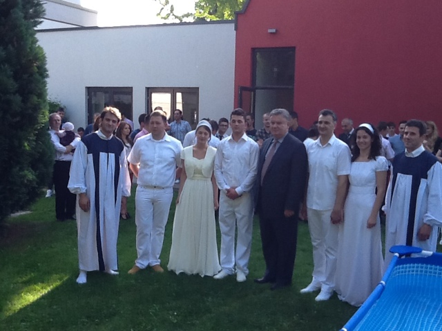 Au oficiat botezul prezbiterul Ștefan Toșa și pastorul Virgil Croitor din Stuttgart, care m-a însoțit. A fost o sărbătoare de neuitat pentru frații din loc, praznic încheiat cu o masă de dragoste de la care n-au lipsit sarmalele.
