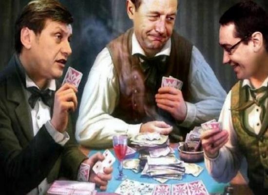 În jur stau chibiții, pe banii cărora joacă cartoforii.