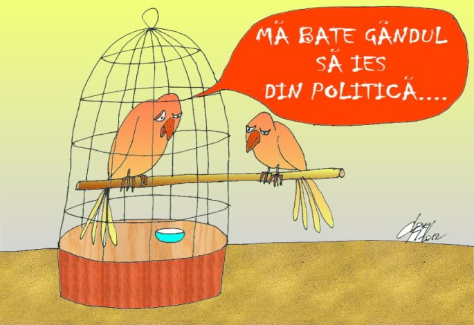 Azi am avut o mare dilema… am indoieli cu privire la identitatea personajului care se afla in cusca. Cand am vazut prima data poza m-am gandit la Crin, dupa ce Curtea a amanat decizia privind validarea sau invalidarea referendumului m-am gandit la Traian… insa mi-am adus aminte ca in urma cu cateva zile un distins intelectual roman il cataloga pe unul ca fiind gasca iar pe celalalt berbec… asa ca nu se potriveste descrierea… asta din poza este papagal…