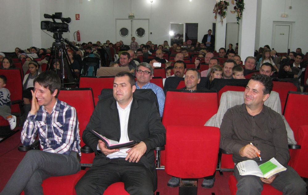 I-am găsit și aici pe frații noștri plini de rânvă sfântă pentru Domnul și gata să asculte Cuvântul Lui chiar dacă este sâmbătă seara. Ca o caracteristică a acestei biserici am remarcat scaunele bisericii cumpărate de la o sală de cinema. Faptul că erau mai înalte ca de obicei și așezate în trei rânduri îți dădea impreia că te afli într-un avion.