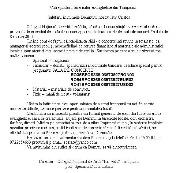 Nevoia acută a unei organizaţii care să fie prin excelenţă în slujba bisericilor şi nu peste biserici. O adevărată organizaţie care vrea să unească bisericile trebuie să se pună în slujba acestora. Percepţia că organizaţia e superioară bisericii locale trebuie răsturnată. Scopul principal este ca bisericile să crească şi să înflorească, nu organizaţia. Atunci când focusul şi preocuparea organizaţiei e Biserica locală, organizaţia propăşeşte în mod implicit. Convingerea noastră profundă este că cea mai importantă, valoroasă, şi sfântă instituţie, alături de familie, este Biserica lui Christos, singura instituţie despre care El, Domnul Christos a spus că o zideşte: “…şi pe această piatră voi zidi Biserica Mea, şi porţile Locuinţei morţilor nu o vor birui.” (Mat. 16.18). Prin urmare orice organizaţie care ajută, spijineşte şi lucrează la zidirea Bisericii lui Christos, devine un partener în marea afacere de mântuire a oamenilor pe care o conduce Dumnezeu Însuşi. Apostolul Pavel scoate la lumină acest adevăr atunci când asociază lucrătorii ce seamănă şi udă Cuvântul Vieţii, cu Dumnezeu: “Căci noi suntem împreună lucrători cu Dumnezeu.”(1Cor. 3.9)