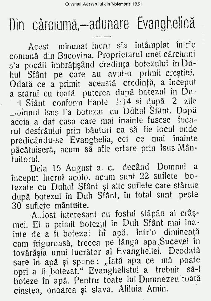 Prin anii 1920, Dumnezeu ne-a dat nouă românilor posibilităţi de a alege. Comuniştii prinseseră cheag şi ofereau ţării alternativa lor. În inima Bisericii Ortodoxe pornise trezirea Oastei Domnului, prin care Dumnezeu oferea alternativa reînnoirii spirituale. Duhul Sfânt s-a coborât peste o familie de ţărani din judeţul Arad, prin care Dumnezeu oferea alternativa unei treziri spirituale evanghelice tuturor confesiunilor lipsite de viaţă şi viziune. Cornilescu dăruia Biblia într-o nouă traducere neamului nostru, într-o limbă pe înţelesul tuturor.