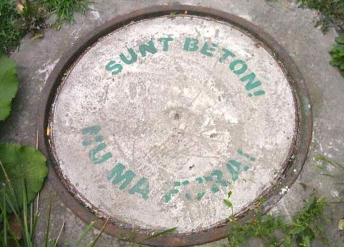 După ce am publicat articolul: „Fratele Beton” am găsit această fotografie. Ea mi-a sugerat ideea că fratele Beton ar trebui să poarte şi el o astfel de etichetă. Ne-ar scuti de mari necazuri.